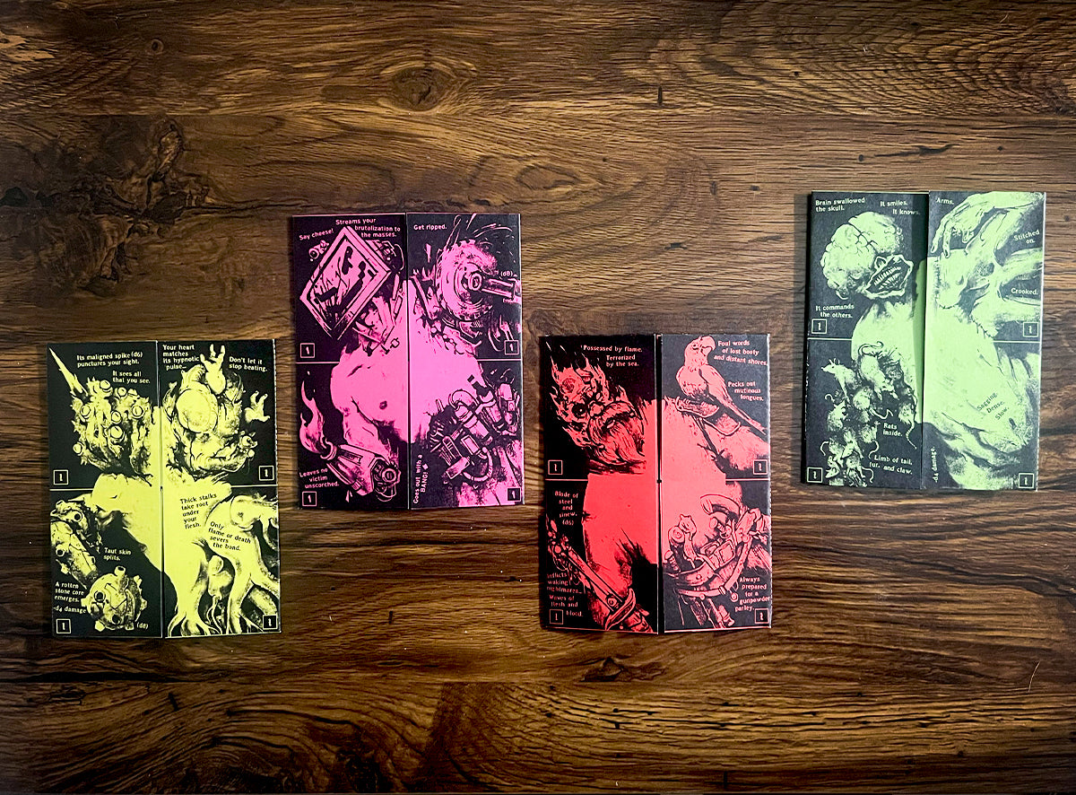 Fold-Å-Freak is a random enemy generator that you quickly roll, fold, and behold. Each roll conjures a different freak complete with gruesome artwork and twisted abilities.