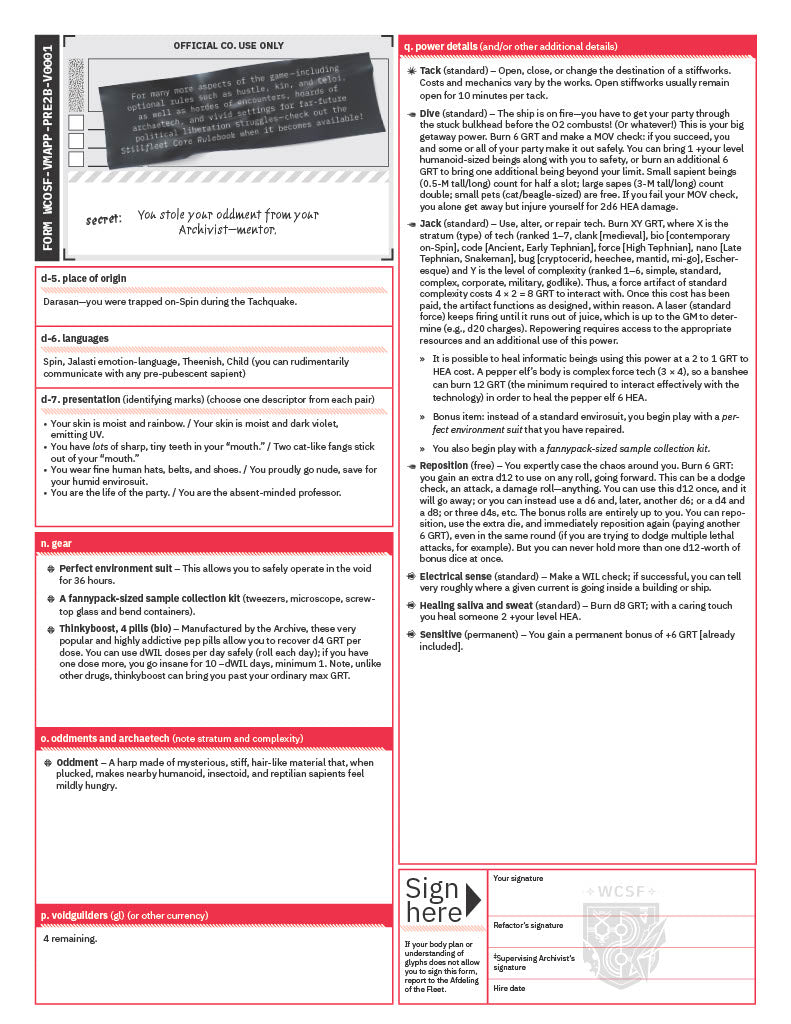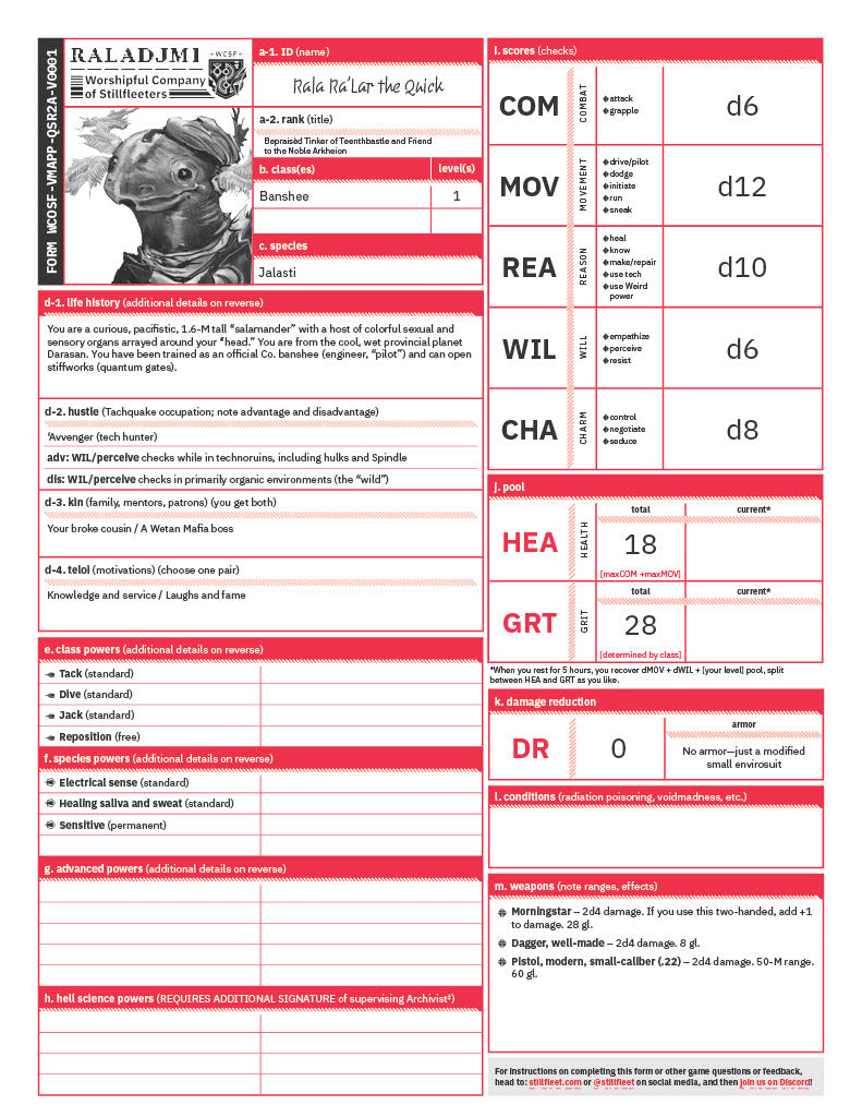 Get the official character sheet plus nine pregenerated characters for Stillfleet!