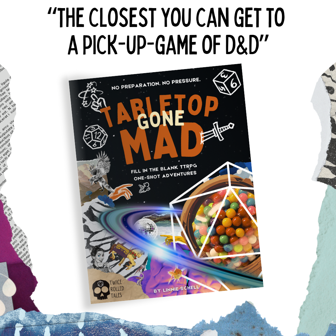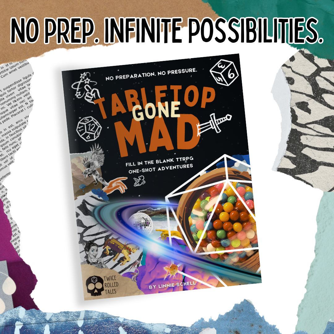 What happens when you mix RPGs with fill-in-the-blank word games? The answer: Tabletop Gone Mad, a new d20-based RPG system by Linnie Schell perfect for new and experienced RPG lovers alike.