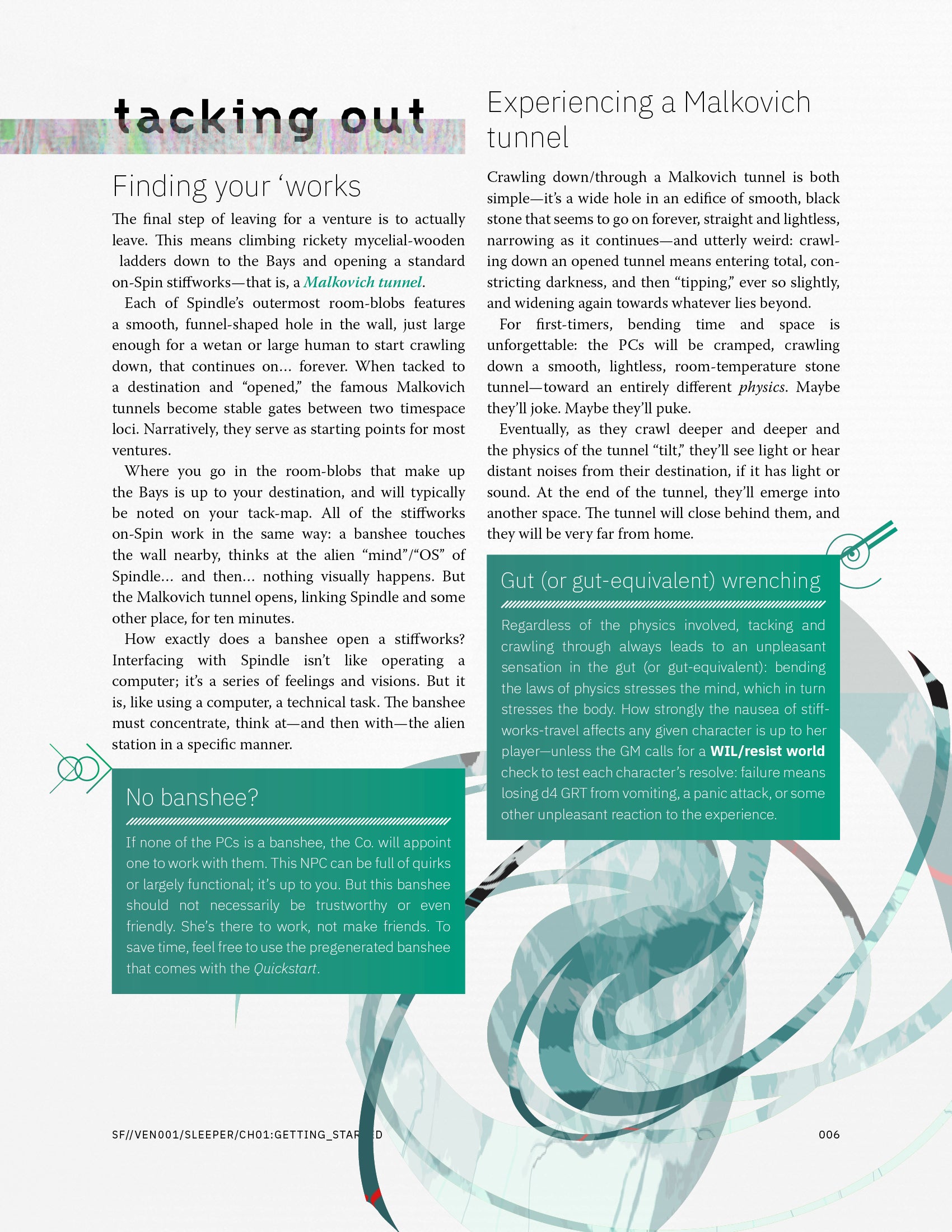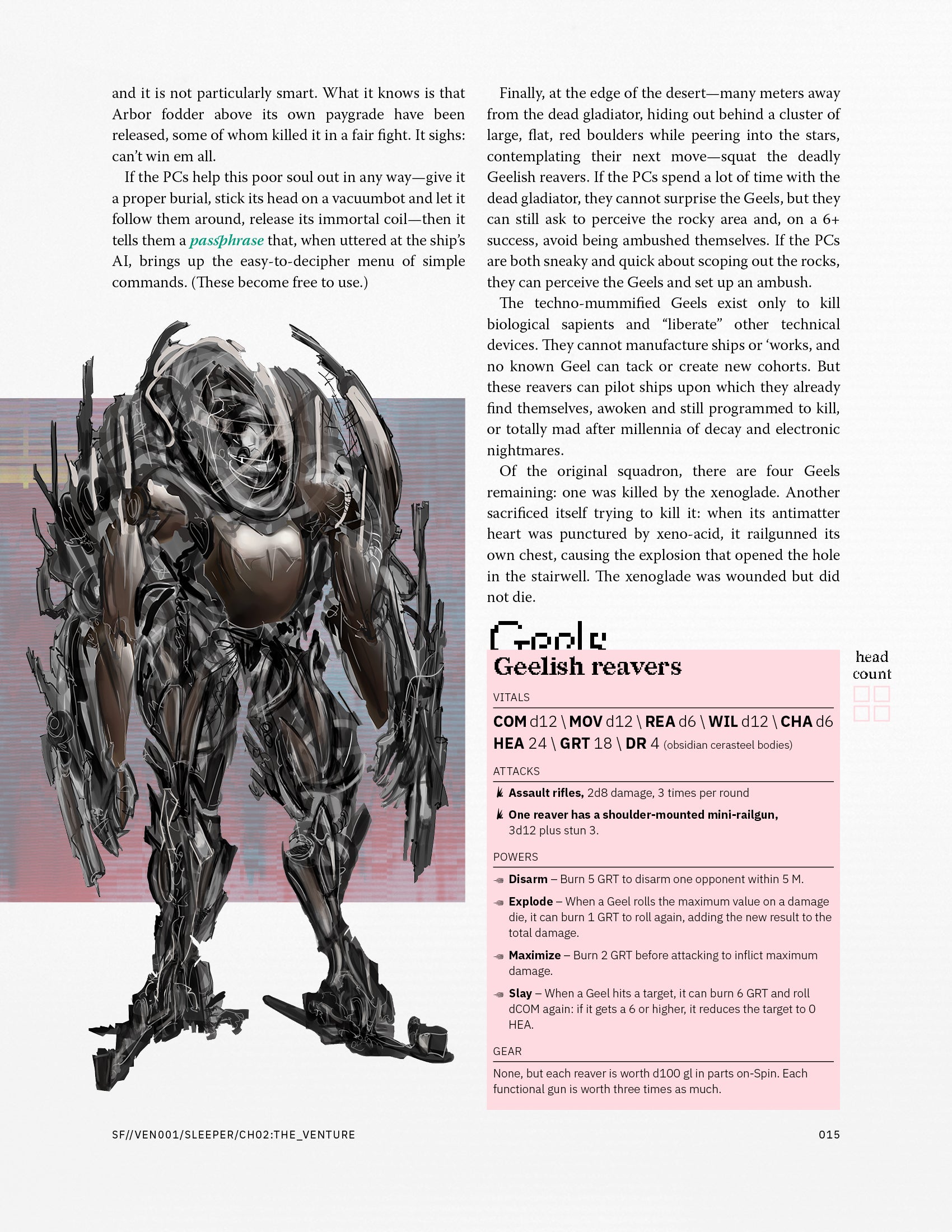 Running this venture means introducing a lot of eerie science fictional elements, but also pushing the PCs to either fight or flee, and to make difficult decisions about saving the thief or leaving her to die—either of which are acceptable outcomes for the Co.