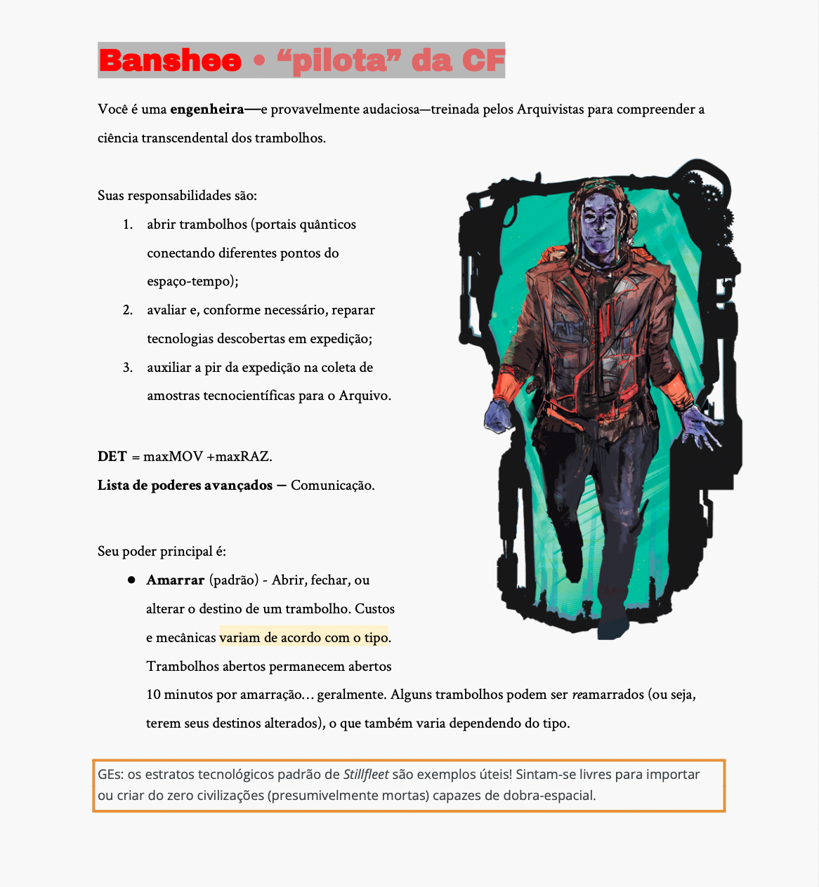 O sistema de regras de Stillfleet é único e super flexível. Nós o testamos com jogadores de RPGs old-school, novatos, fãs de sci-fi, e transeuntes aleatórios.